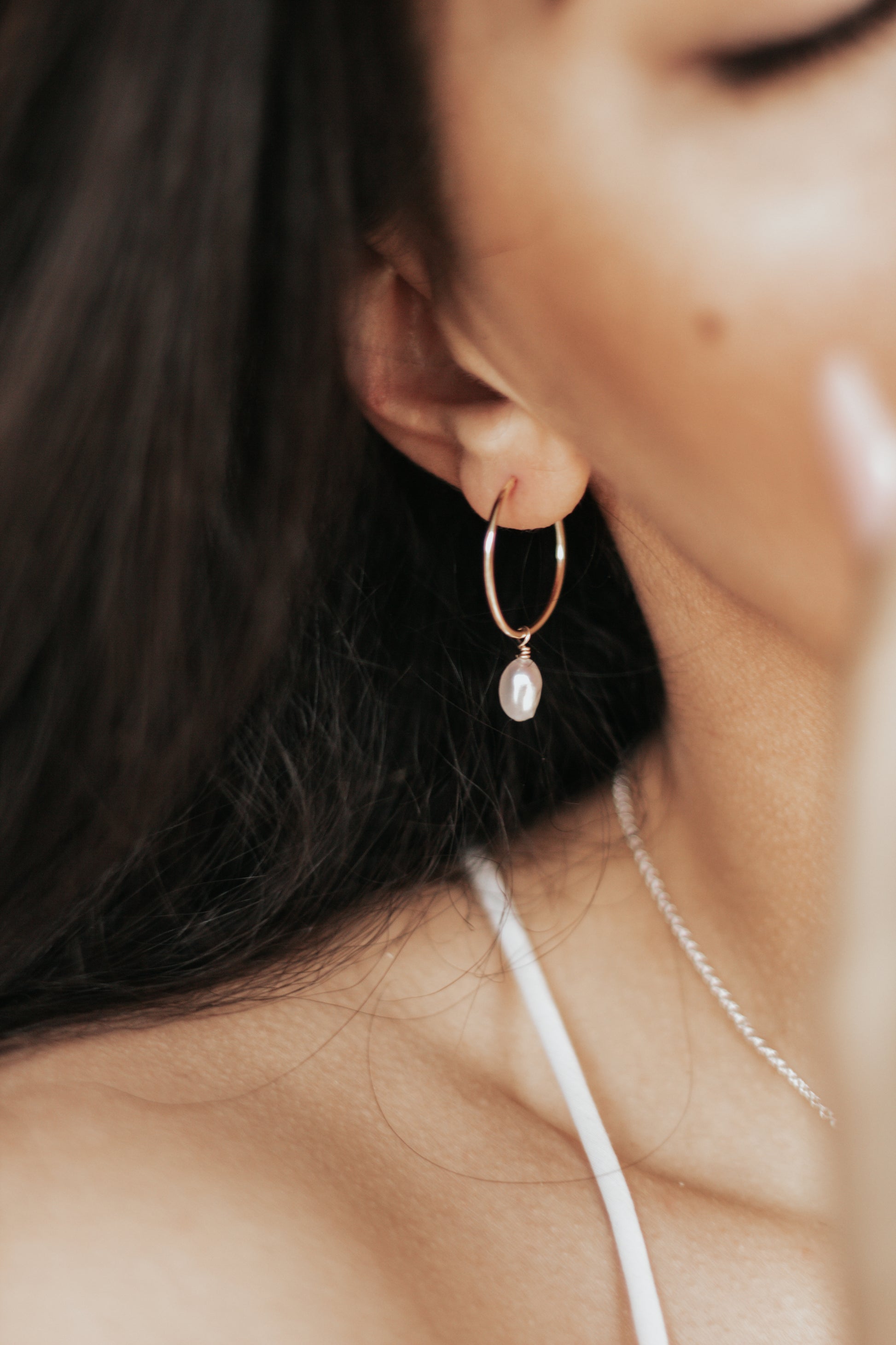 Huggie Pearl Hoops